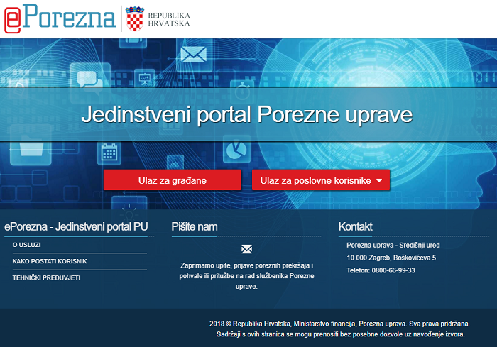 EPorezna je službeni portal Porezne uprave Republike Hrvatske, koji građanima i poslovnim subjektima omogućuje online pristup poreznim uslugama i podacima, bez potrebe za odlaskom u poslovnicu.