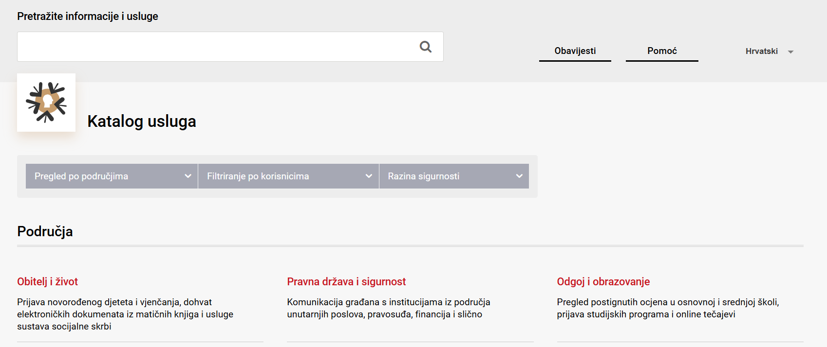 Na naslovnoj stranici portala e-Građani postoji jednostavna tražilica.
