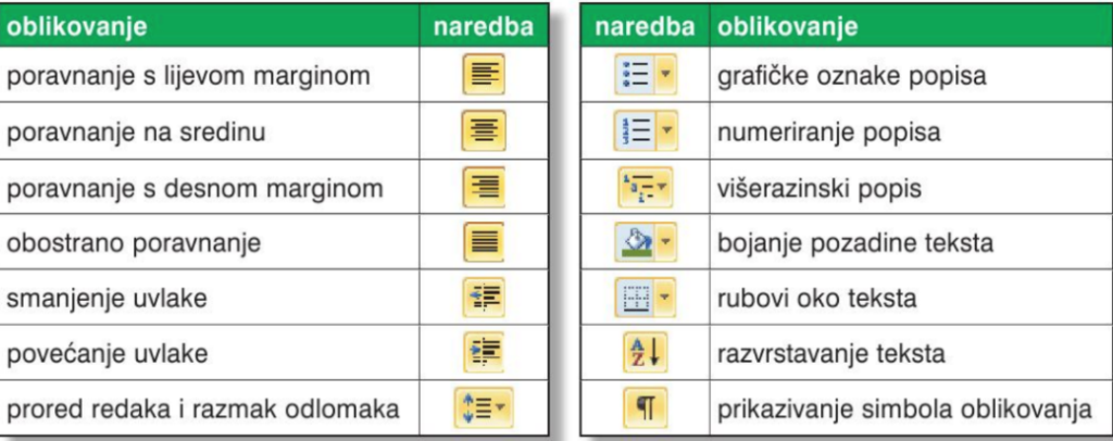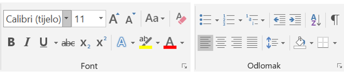 Naredbe za oblikovanje odlomka.