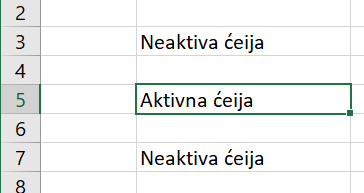 Radna površina Excelova prozora predstavlja veliku tablicu poznatu kao radni list. Sastoji se od pravokutnih ćelija, smještenih na sjecištima stupaca i redaka. Svaka ćelija ima jedinstvenu adresu, koja se određuje kombinacijom oznake stupca i broja retka na kojem se nalazi. Ćelija postaje aktivna kada na nju kliknemo mišem ili je označimo upotrebom tipkovničkih prečaca.