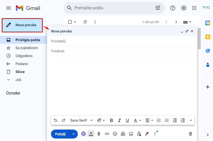Pisanje i slanje nove poruke u Gmailu