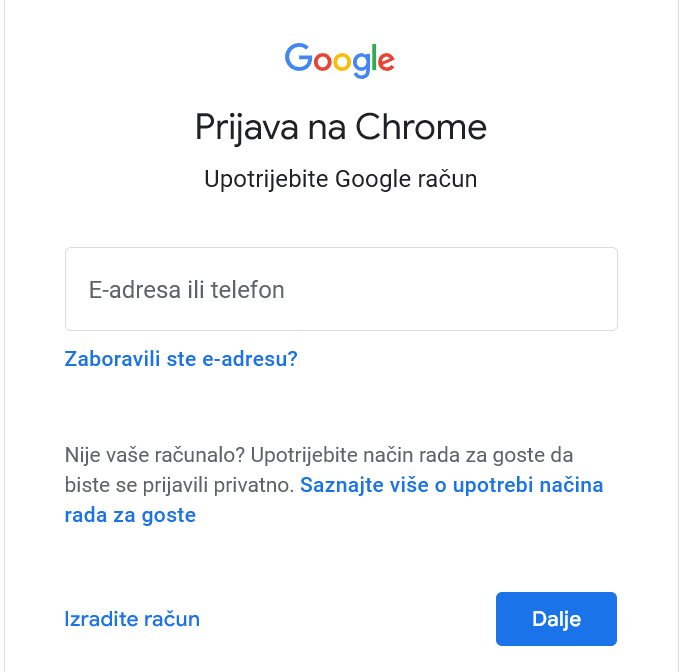 2. Prijava na Google račun