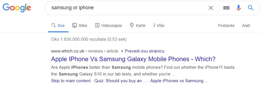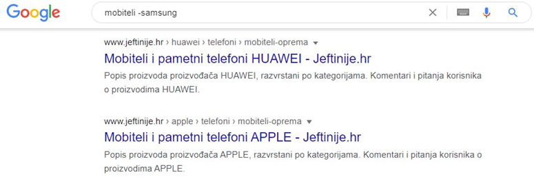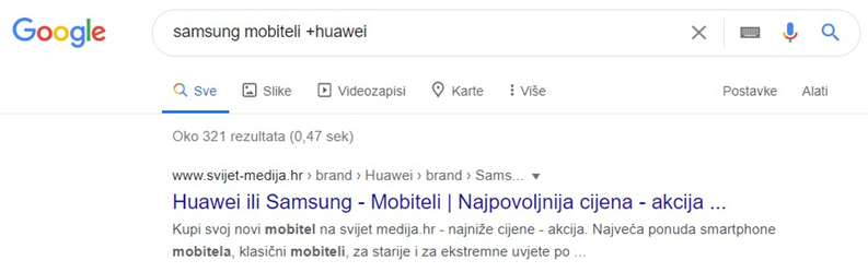 Osnovni Google operatori