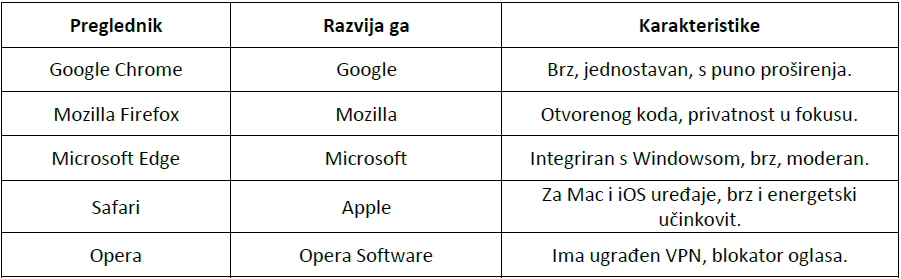 Najpoznatiji internetski preglednici su: