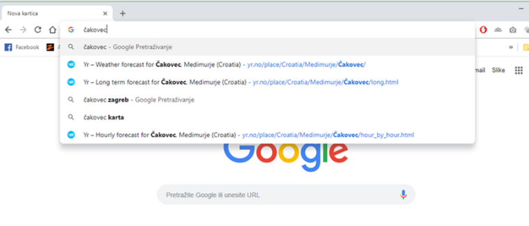 Pretraživanje Interneta korištenjem tražilice Google u Chrome pregledniku