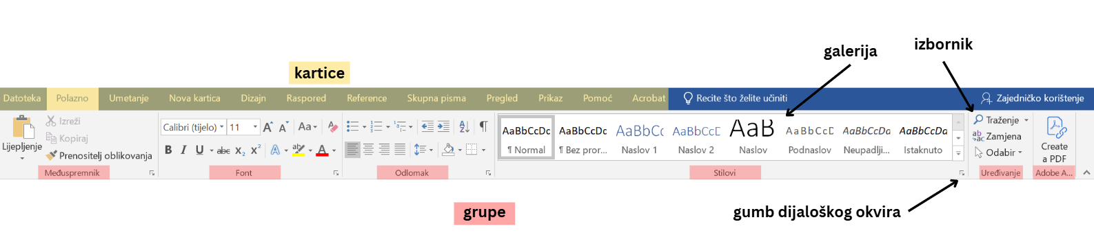 Osnovni dijelovi programa Word.