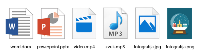 Datoteka (eng. File) je zapis u kojemu se nalaze podaci spremljeni na disku računala pod određenim imenom. Po ikoni možemo zaključiti u kojem su programu nastale i koje su vrste. To isto možemo zaključiti i prema njihovu nastavku ili ekstenziji (.rtf, .docx, .pptx, .mp4, .mp3, .jpg, .png).