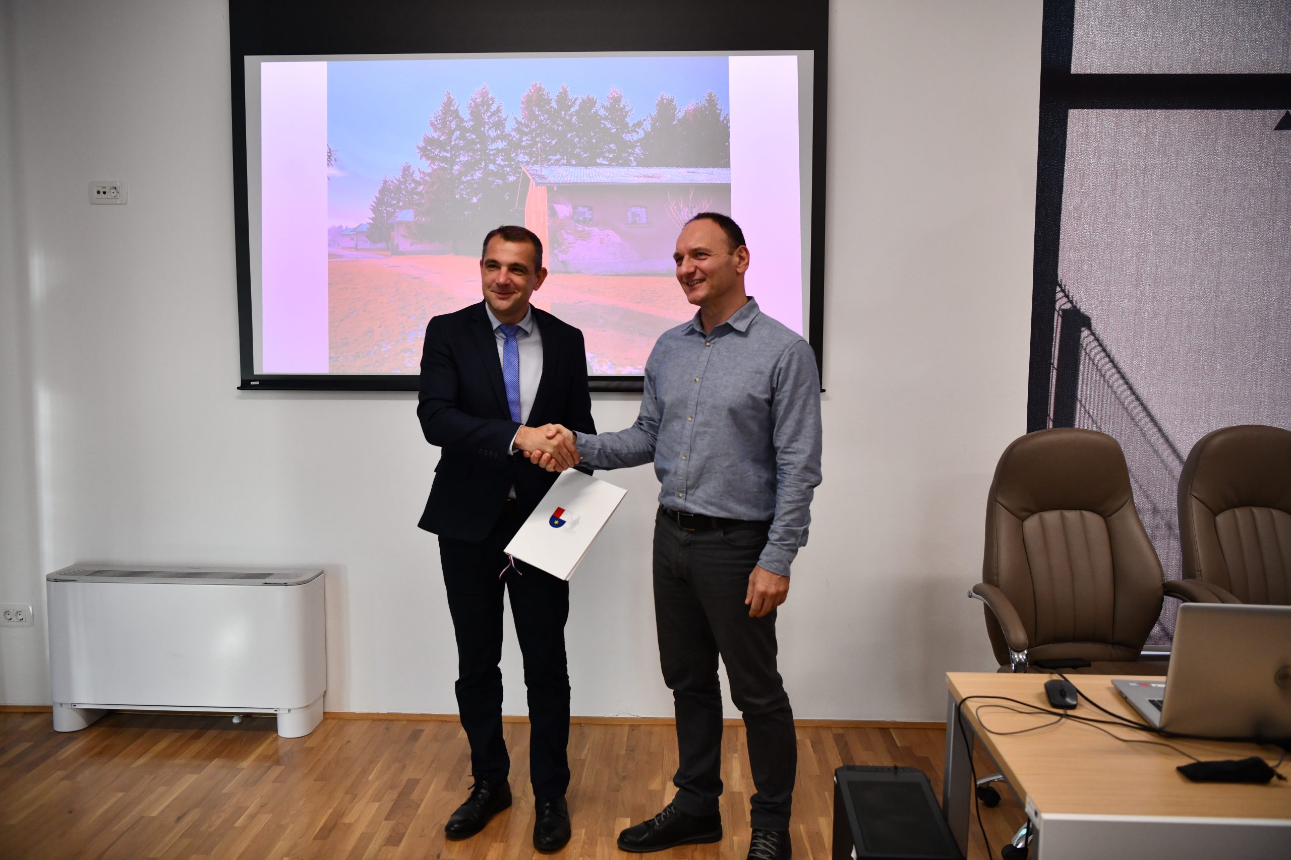 Direktor TICM-a Ivan Plačko, župan MŽ Matija Posavec i direktor poduzeća Zelena gradnja, Veljko Milisavljević.