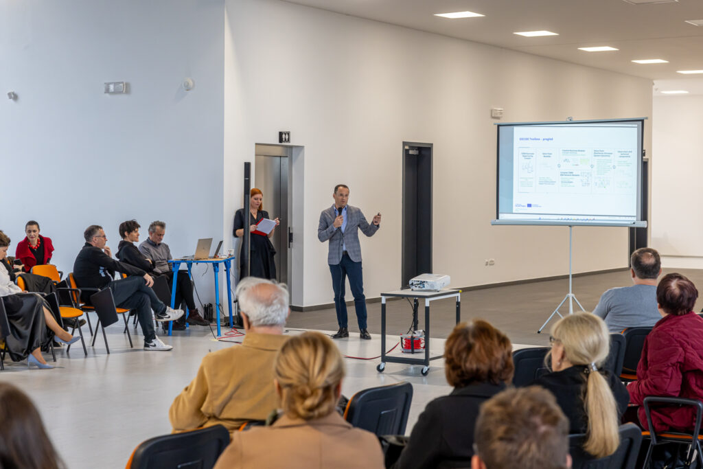 Nakon modne revije, predstavljeni su internacionalni projekti čiji fokus je na održivosti i kružnoj ekonomiji. Iskoristili smo priliku da predstavimo Interreg Danube projekt DECIDE – Digitalne usluge za kružno gospodarstvo, prepoznat kao vodeći projekt EUSDR-a za 2024. godine, u kojem Humana Nova i TICM sudjeluju kao partneri. Projekt razvija praktične metode i alate za poticanje inovativnih (kružnih) poslovnih modela te omogućuje prekograničnu razmjenu znanja i konkretnu podršku kroz pilot-projekte. Projekt i njegove ciljeve predstavio je Ivan Plačko, direktor TICM-a, naglasivši kako digitalni pristupi i strukturirani alati mogu značajno ubrzati transformaciju poduzeća prema održivijim praksama. Festival je bio idealna prilika da šira javnost čuje o potencijalu ovog projekta i mogućim koristima koje pomoću njega mogu ostvariti.