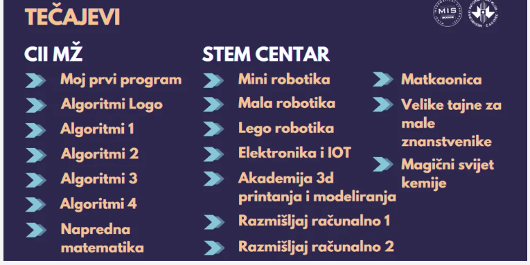 Predsjednici udruga, Dejan Drabić (MIS) i Viktor Lazar (MIK), osvrnuli su se na bogatu i uspješnu školsku godinu 2024./2025. Kroz 14 redovitih tečajeva i radionica tjedno, aktivnostima, kampovima, radionicama i EU projektima, sudjelovalo je preko 300 djece i mladih.