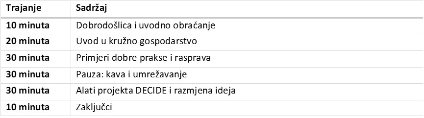 - Primjeri dobre prakse: kružni poslovni modeli i kratka rasprava.