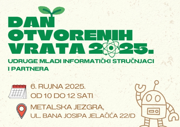 Udruga Mladi informatički stručnjaci (MIS) i partneri pozivaju vas na Dan otvorenih vrata 2025.: koji će se održati…